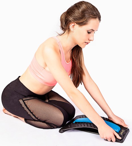 Przyrząd możemy również wykorzystać, jako podparcie kręgosłupa lędźwiowego, co jest bardzo ważne podczas długotrwałego siedzenia w pracy, domu. Odciążenie kręgosłupa lędźwiowego jest bardzo istotne dla wszystkich, którzy spędzają wiele godzin w pozycji siedzącej, borykających się z bólami kręgosłupa. Specjalne wypustki na urządzeniu oraz na pasku silikonowym doskonale masują i rozluźniają napięte mięśnie.