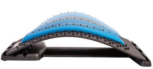 Przyrząd możemy również wykorzystać, jako podparcie kręgosłupa lędźwiowego, co jest bardzo ważne podczas długotrwałego siedzenia w pracy, domu. Odciążenie kręgosłupa lędźwiowego jest bardzo istotne dla wszystkich, którzy spędzają wiele godzin w pozycji siedzącej, borykających się z bólami kręgosłupa. Specjalne wypustki na urządzeniu oraz na pasku silikonowym doskonale masują i rozluźniają napięte mięśnie.
