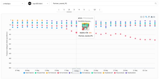 Monitoruj spadki i wzrosty ofert w wynikach wyszukiwania wg. trafności.