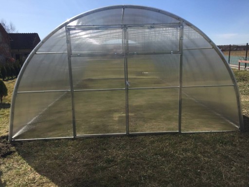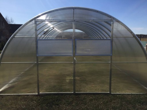 Nowoczesna i łatwa w montażu konstrukcja wykonana ze stali 0,8 mm ocynkowanej ogniowo z obu stron. Łuki wykonane z jednego elementu – wygięte są, fronty są spawane. W komplecie są kotwy w kształcie litery ”T” do montażu do gruntu oraz komplet śrub. Poszycie wykonane jest z poliwęglanu komorowego odpornego na promieniowanie UV i gradobicie. Półokrągły kształt szklarni zapobiega zaleganiu śniegu