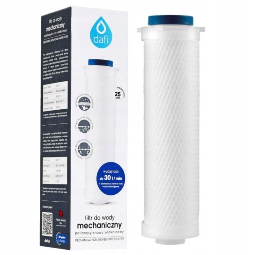 Wkład polipropylenowy Dafi jest przeznaczony do filtrowania wody z zanieczyszczeń mechanicznych. Usuwa z wody piasek, drobne zawiesiny, tłuszcze, produkty korozji, zanieczyszczenia wymywane z powierzchni instalacji hydraulicznych.