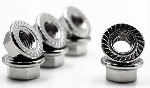 Nakrętki kołnierzowe znajdują zastosowanie w branży motoryzacyjnej. Doskonale sprawdzają się jako element mocowania np. zawieszenia.