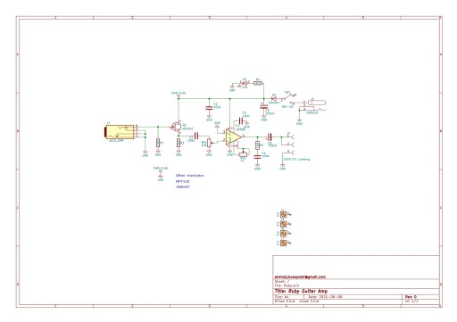 Płytka drukowana PCB do wzmacniacza słuchawkowego do gitary w topologii znanej jako Ruby Guitar Amp.