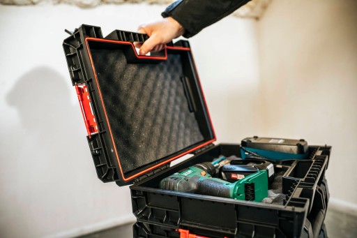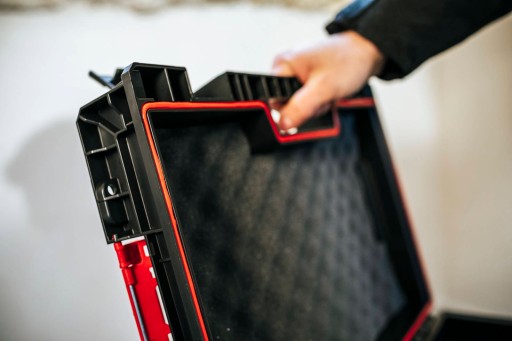 Qbrick System PRO Toolcase to uniwersalny i modułowy pojemnik na elektronarzędzia. Pojemnik ten gwarantuje bezpieczeństwo przechowywania oraz przenoszenia drogich i specjalistycznych narzędzi. Wyposażony jest w podwójną piankę ochronną, a wytrzymałe, poliamidowe zapięcia dodatkowo zabezpieczają jego zawartość. Zamontowana w pokrywie uszczelka zapewnia ochronę przed wilgocią oraz pyłem.