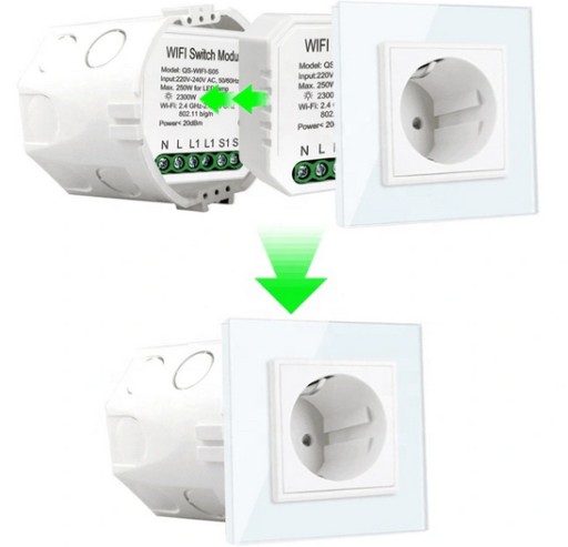 Uniwersalny moduł WiFi z funkcją pomiaru energii, przeznaczony do inteligentnego sterowania mechanicznych włączników światła i tradycyjnych gniazdek