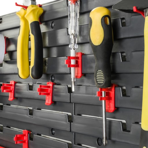 Pomimo, że tablice, uchwyty i pojemniki są plastikowe świetnie sprawdzą się w profesjonalnym warsztacie ale i w przydomowym garażu.