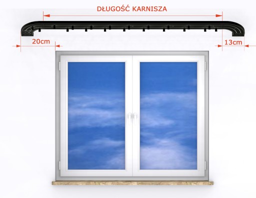 W celu doboru odpowiedniej długości szyny, zaleca się aby była ona szersza od wnęki okiennej minimum o 40 cm (20 cm na każdą stronę)