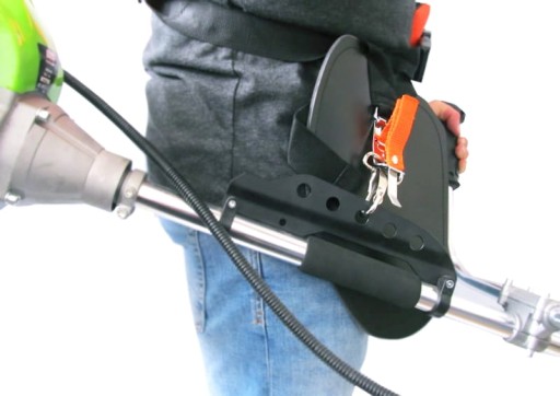 - Szelki zostały wyposażone w zatrzask do awaryjnego odpięcia kosy za pomocą jednej ręki.