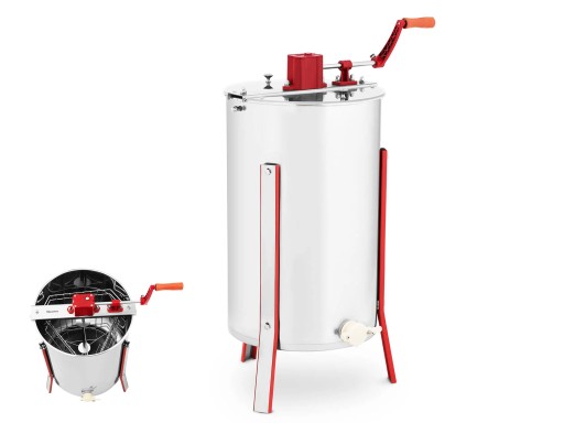 Ekstraktor do miodu wykonany został z solidnej stali nierdzewnej, która jest nie tylko trwała i odporna na korozję, ale również łatwa w utrzymaniu w czystości. Jest ona także neutralna dla miodu i nie wpływa na jego właściwości. Miodarka stoi na 3 nogach, co zapewnia jej odpowiednią stabilność w czasie pracy.