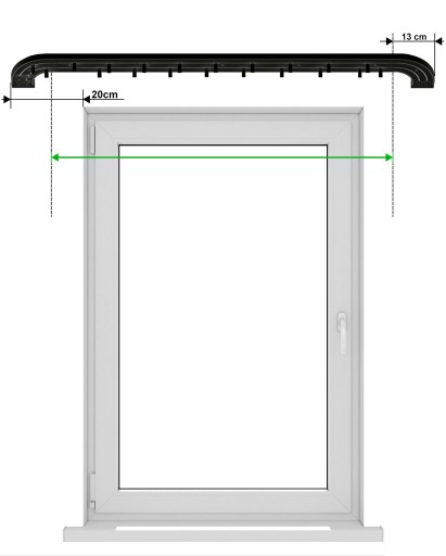 W celu doboru odpowiedniej długości szyny, zaleca się aby była ona szersza od wnęki okiennej minimum o 40 cm (20 cm na każdą stronę)