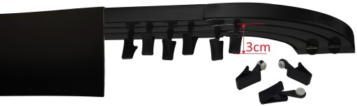 - Maskownica w kolorze czarnym o szerokości 9 cm i długości równej całkowitej długości karnisza