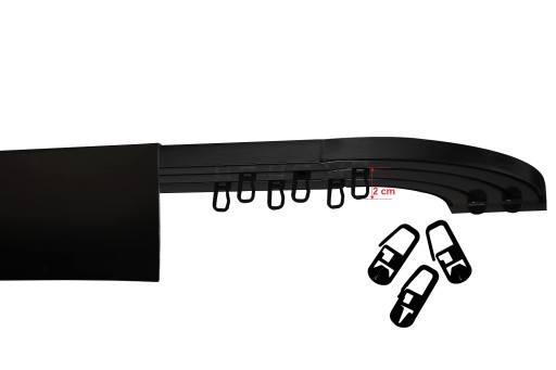 Szyna z osłoną Karnisz sufitowy 2 tor PCV CZARNY z maskownicą 9 łukiem 200