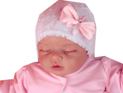 CZAPECZKA KORONKOWA podszyta bawełną DO CHRZTU