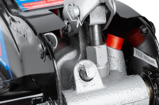 Żaba wykonana została z grubej blachy stalowej pomalowanej proszkowo. Taki materiał zapewnia odpowiednią sztywność całej konstrukcji. Podnośnik wyposażony w zawór spustowy zintegrowany z zaworem bezpieczeństwa.
