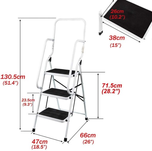 Ta 3-stopniowa drabina jest niezbędna w każdym gospodarstwie domowym, wyposażona jest w antypoślizgowe stopnie z gumowymi bieżnikami i dwie boczne poręcze, które zapewniają dodatkowe wsparcie i stabilność. Ta drabina jest idealna do pomocy w sprzątaniu, gdy próbujesz dotrzeć do trudno dostępnych miejsc i jest idealna podczas malowania i dekorowania, a także może być używana do ogrodnictwa, by wymienić tylko kilka.
