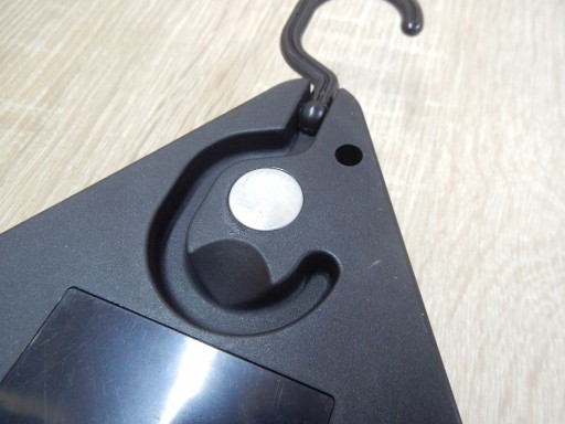 Magnes z boku i z tyłu oraz dodatkowy haczyk umożliwiają łatwe zamocowanie trójkąta do różnych miejsc w samochodzie.