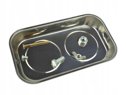 Produkt pozwala na przechowywanie różnego rodzaju elementów metalowych podczas naprawy. Magnesy pozwalają na przymocowanie miski w dogodnym miejscu i zabezpieczają miskę i części w niej przechowywane przed upadkiem i rozsypaniem.