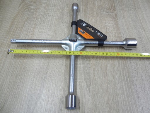 Klucz do kół krzyżakowy NEO o wymiarach 17 x 19 x 22 x 1/2",o długości ramienia 380 mm. Klucz wzmacniany, wykonany zgodnie z norma DIN 889 z wysokiej jakości stali chromowo-wanadowej. Gwarantem wysokiej jakości i niezawodności produktu jest certyfikat TÜV Rheinland. Marka NEO spełnia oczekiwania profesjonalistów.