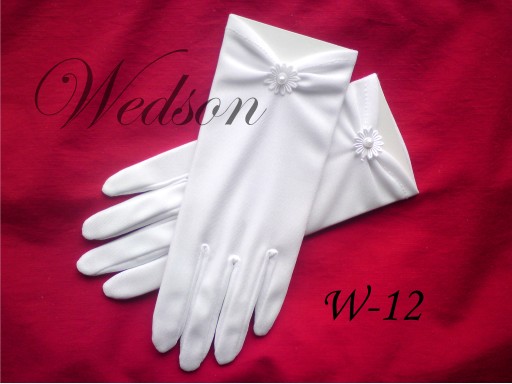 - Wzór: W-12 rękawiczki delikatnie marszczone z ręcznie naszytym kwiatkiem i perełką