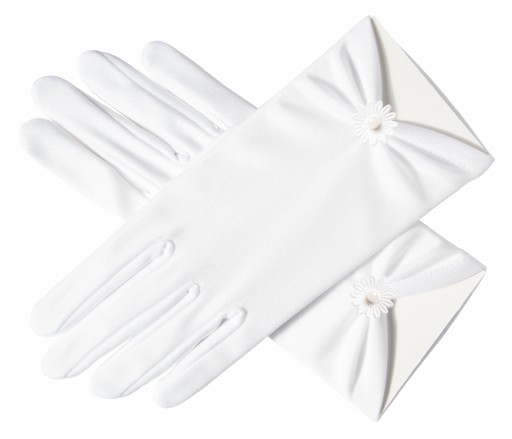 Białe Rękawiczki Komunijne uszyte z największą starannością z najlepszego materiału, odpowiedni krój sprawia że doskonale dopasowują się do dłoni, rozmiar uniwersalny