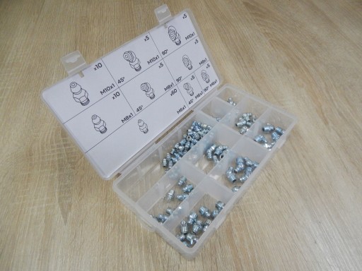 - Zestaw zawiera: Smarowniczki: M10x1 - 10 szt, M10x1x45° - 5 szt, M10x1x90° - 5 szt