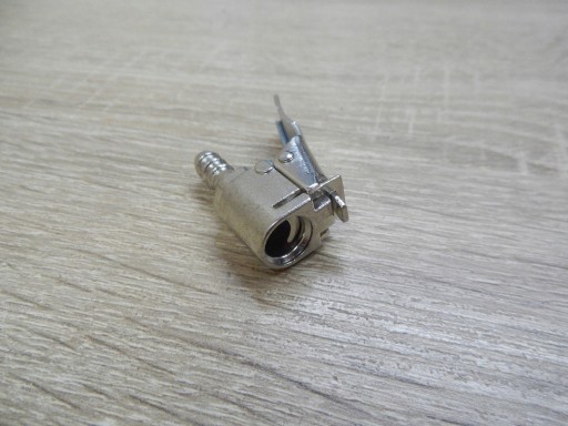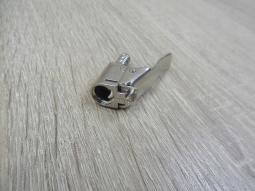 Metalowa końcówka do pompowania kół ze standardowym zaworem samochodowym.