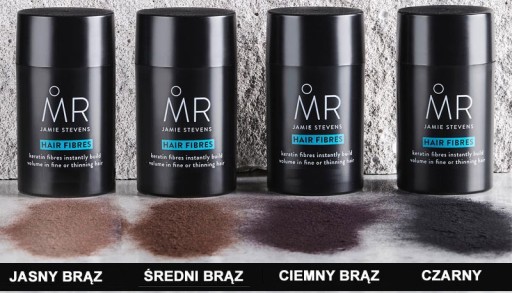 MR. Hair Fibres dostępny jest w 4 naturalnie wyglądających kolorach.