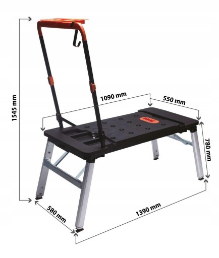 - 7 funkcji w jednym urządzeniu: stół warsztatowy, wózek, rusztowanie, platforma robocza, leżanka warsztatowa, urządzenie jezdne, wózek ręczny