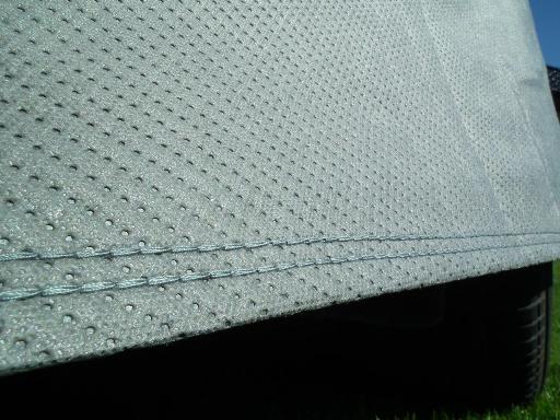 Wykonane z oddychającego materiałuTybond. Takie rozwiązanie pozwala na wielomiesięczne przetrzymywanie samochodu pod pokrowcem bez obaw że karoseria i inne elementy będą się niszczyły.
