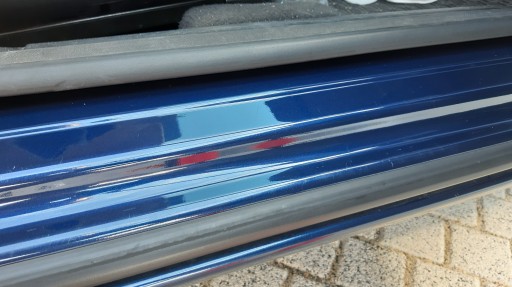 Poniżej przedstawiamy fotorelację z wymiany folii na progu własnego auta. Folia po prawie 1,5 roku intensywnego użytkowania (przez brudne buty 5 latka samodzielnie wsiadającego i wysiadającego z auta) doczekała się wymiany. Folia nie została w żadnym miejscu przerwana, wymiana została podyktowana wyłącznie względami estetycznymi oraz chęcią zaprezentowania właściwości folii. Trzecie zdjęcie bez folii przedstawia próg auta, na które przez 7 lat folia nie była naklejona, są więc małe zarysowania które powstały przed pierwszą aplikacją folii.