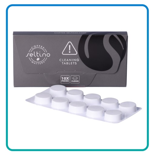 Seltino CLEAN to uniwersalne tabletki do czyszczenia ekspresów, dostępne w opakowaniu zawierającym 10 tabletek czyszczących.