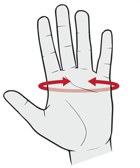 - zmierz, np. miarą krawiecką, obwód dłoni w najszerszym jej miejscu. Dłoń powinna być luźna, jak na ilustracji obok