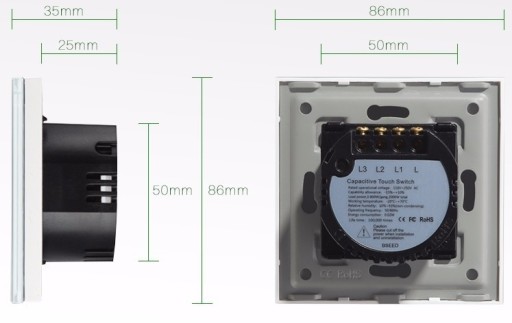 - Materiał z którego wykonany jest przełącznik: ABS / hartowane szkło