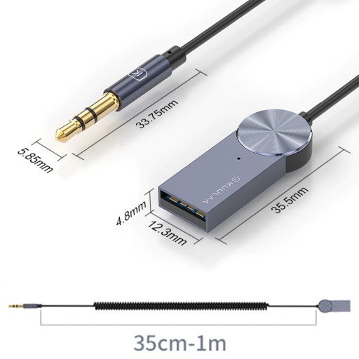 Transmiter dźwięku KUULAA AUX - USB to elegancki oraz kompaktowy adapter bluetooth, wyposażony w złącze USB oraz miniJack 3,5mm. Urządzenie pozwala na odbiór sygnału dźwiękowego z urządzeń wyposażonych w funkcję BT takich jak smartfon, czy tablet na urządzenia nieposiadające takiej funkcji np. radio samochodowe, głośniki. Adapter posiada najnowszą wersję BT 5.0 o zasięgu ok. 10 metrów. Dzięki wbudowanemu mikrofonowi urządzenie wspiera funkcję Hands-free. Do prawidłowego działania potrzebne jest źródło zasilania podłączone do gniazda USB.