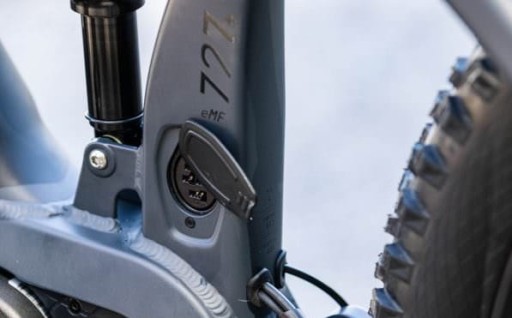 Zaślepka Bosch chroni styki gniazda ładowania akumulatora Powertube w rowerze elektrycznym.