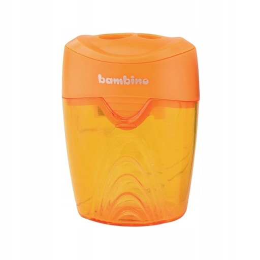 ✏️️📝🌞Temperówka Bambino idealna do szkoły. Specjalny pojemnik pomoże zachować porządek na biurku. Dwa otwory natemperują dwa rodzaje grubości kredek - cienkie i grube. Łatwe temperowanie zapewnia niezwykle wytrzymałe ostrze. Temperówka dostępna w pięknych, żywych kolorach. Wysoka jakość wykonania zagwarantowana przez kultową markę BAMBINO. Pokoloruj swój świat z Bambino! ✏️📝🌞