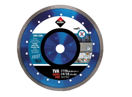Specjalny kształt obrzeża tarczy diamentowej TVA gwarantuje większą szybkość cięcia w najtwardszych materiałach bez utraty jakości wykończenia.