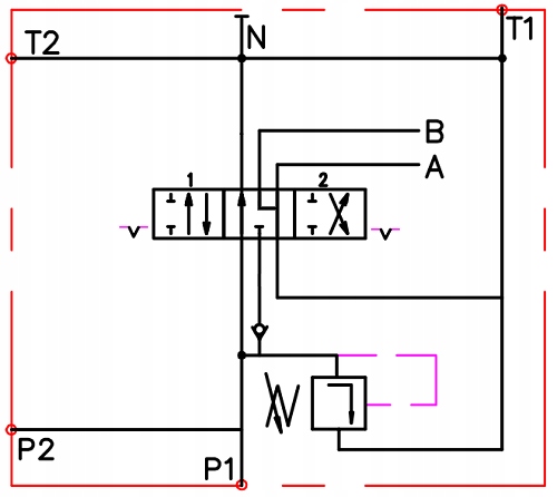 Rozdzielacz 1 sekcyjny, z jedną sekcją D8 pod silnik hydrauliczny, która posiada wbudowany zatrzask.