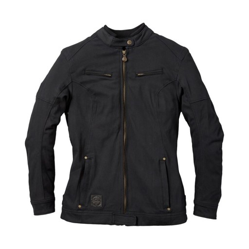 Stała podszewka; 4 kieszenie zewnętrzne i 1 wewnętrzna; regulowane patki w talii; mankiety na zatrzaski; elastyczny materiał z mieszanki bawełny dla większego komfortu; kołnierzyk z dzianiny ściągaczowej; akcja z powrotem; wytłaczana skórzana naszywka z przodu; małe nadrukowane logo na karku