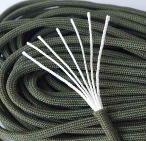 - Wewnątrz kolorowego oplotu znajduje się 7 wytrzymałych nylonowych rdzeni.