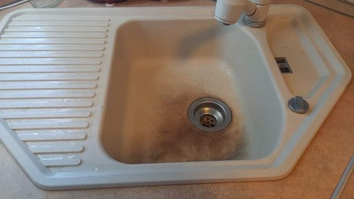 Należy obficie spryskać powierzchnie zlewozmywaka i pozostawić na 40 minut po czym spryskać ponownie i zostawić na kolejne 20 minut.
