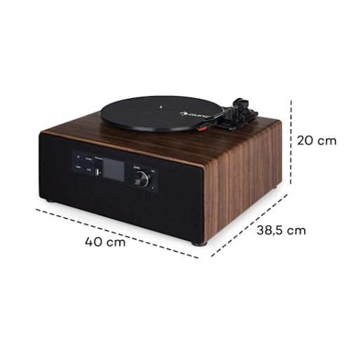 Connect Vinyl Cube marki auna to także stacje radiowe z całego świata: dzięki radiu internetowemu, DAB+ i UKF do wyboru jest do 10 000 stacji radiowych, które zadowolą gust każdego miłośnika radia. Oprócz smartradia umieszczony na górnej stronie urządzenia gramofon stanowi bez wątpienia akustyczne serce wieży. Odtwarza on bez problemu płyty winylowe z prędkością 33, 45 lub 78 obrotów na minutę, przywracając do życia ulubione brzmienie czarnych płyt. Oprócz tego wieża dysponuje wbudowanym interfejsem Wi-Fi oraz portem USB i wejściem AUX, poprzez które można odtwarzać niezliczone pliki MP3 i pliki audio. Oczywiście do dyspozycji jest także bezprzewodowa funkcja Bluetooth. Dzięki temu Connect Vinyl Cube umożliwia niezawodne odtwarzanie strumieniowe (streaming) audio przez smartfon, tablet lub laptop. Także sterowanie jest bardzo proste. Ze wszystkich funkcji można korzystać, sterując nimi bezpośrednio na urządzeniu, przy pomocy pilota zdalnego sterowania lub aplikacji AirMusic ze smartfona lub tabletu. Dla dokładnej orientacji wieża posiada przejrzysty wyświetlacz kolorowy TFT o przekątnej 6 cm (2,4 cala) z technologią HCC. Pomaga on nie tylko przy sterowaniu, ale wyświetla także radiowe teksty informacyjne, tytuły utworów, godzinę i ustawione alarmy.