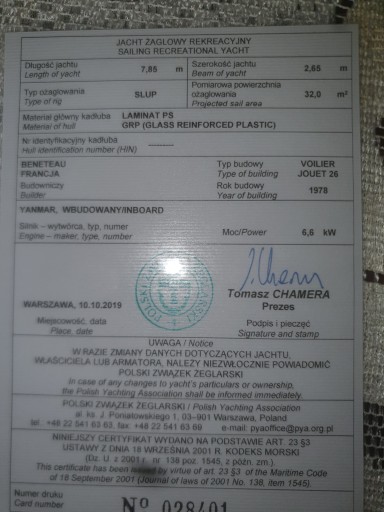 Mam do sprzedania żaglówkę z 1978 roku produkcji francuskiej .żaglówka jest zwodowana w marinie Trzebież miejsce wykupione do kwietnia 2022