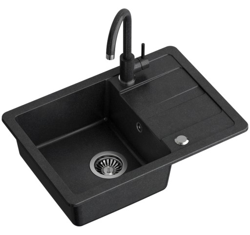 ZLEWOZMYWAK JEDNOKOMOROWY CZARNY + BATERIA + SYFON