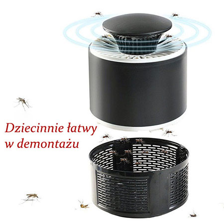 Demontaż oraz opróżnienie pojemnika z komarami zajmuje dosłownie kilkadziesiąt sekund. Dzięki temu lampa może być używana zarówno przez osoby młode jak i ludzi w podeszłym wieku.