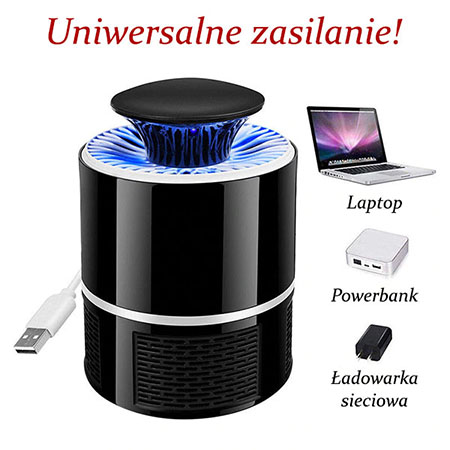 Lampa owadobójcza jest zasilana kablem USB, dzięki czemu może być stosowana w domu, na balkonie, w ogrodzie, itp. Ponadto urządzenie sprawdza się idealnie zarówno w biurze, warsztacie jak i sklepie.