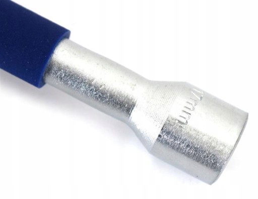 Antypoślizgowe uchwyty w typowym niebieskim kolorze zwiększają bezpieczeństwo podczas odkręcania i zabezpieczania nakrętek kół.