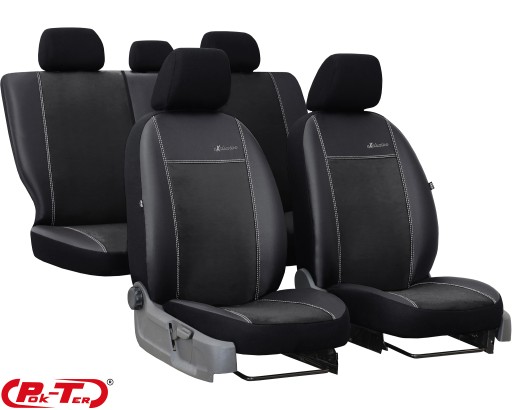 Nasze pokrowce Exclusive Alicante zakrywają fotele w całości. Część frontowa (oparcie i siedzisko) to połączenie materiału Alicante na pasie środkowym, ze skórą ekologiczną na bokach. Plecy, zagłówki oraz boczne wykończenia pokrowców wykonane są z mocnego czarnego materiału. Dzięki temu rozwiązaniu oryginalna tapicerka foteli jest chroniona przed zniszczeniem oraz zabrudzeniami w najbardziej narażonych na to miejscach.