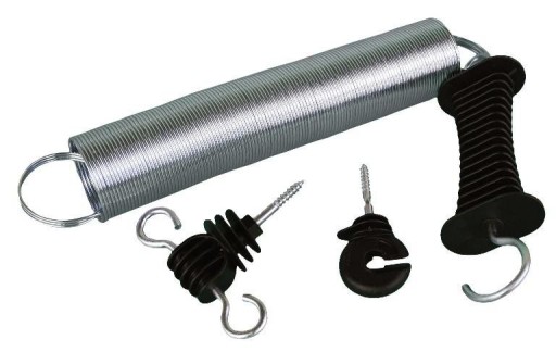 Kompletny zestaw bramowy z przeznaczeniem do budowy furtek i bram w ogrodzeniu elektrycznym. Zamknięcie bramowe składa się z: - izolowanego uchwytu bramowego - elastycznej sprężyny z drutu ocynkowanego, rozciągającej się do długości 5 m - 2 sztuki izolatorów bramowych.