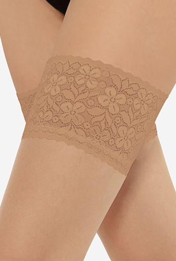 Praktyczne i delikatne, silikonowe paski stanowią gwarancję niezawodności pończoch samonośnych. Bardzo dobrze przylegają do ciała. Dzięki ich zastosowaniu materiał nie zsuwa się, ani nie marszczy. Silikonowe paski zostały zamaskowane szerokim paskiem dekoracyjnym - ze zmysłowej koronki.